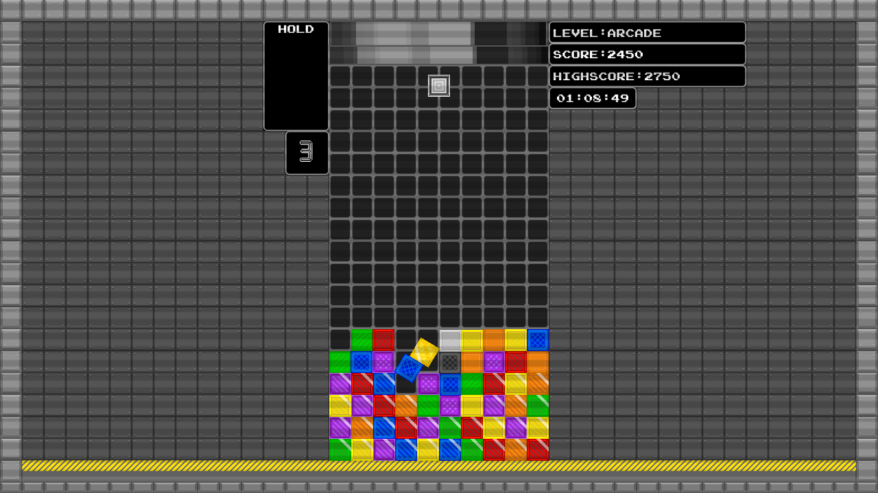 In Spentrix (Recons) you will place falling blocks of Tetris-like figures on the playing field. However, your task will not be to create complete lines, but to connect three or more blocks of the same color to make them disappear.